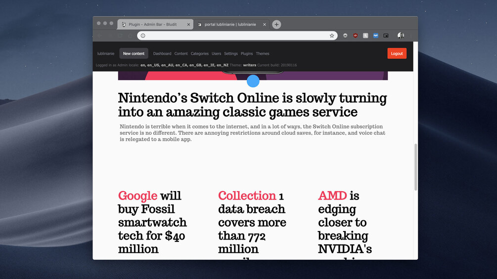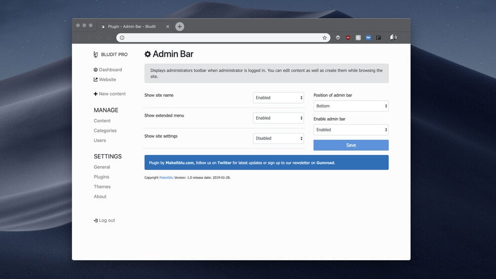 Have the ability to create and modify posts and pages while browsing your Bludit powered website.